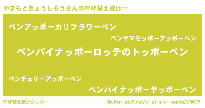 | ピコ太郎風あだ名 | 『ヤヤ太郎』『ピヤ史郎』『ピコヤ郎』 |