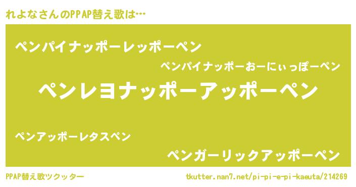 | 料理風あだ名 | 『れよなの豆乳スープ』『れよなごはん』 |