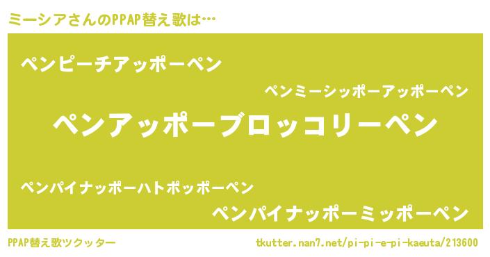 | 意味不明あだ名 | 『ミーシアフォーエバー』『自称ミーシア』 |