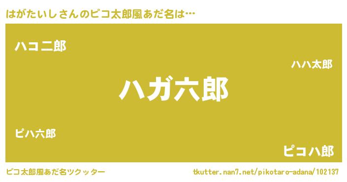 | 男性向けラノベタイトル風あだ名 | 『はがたいしの嫁は女の子じゃないと思った?』 |