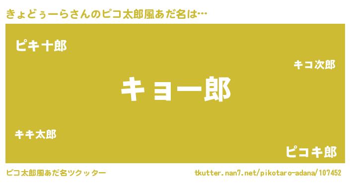 | 男性向けラノベタイトル風あだ名 | 『きょどぅーらの嫁は女の子じゃないと思った?』 |