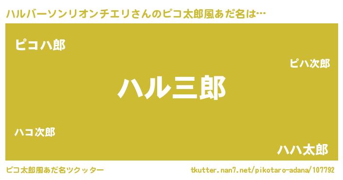 | 男性向けラノベタイトル風あだ名 | 『ハルバーソンリオンチエリの嫁は女の子じゃないと思った?』 |