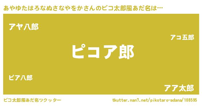 | 男性向けラノベタイトル風あだ名 | 『Re:あやゆたはろなぬさなやをかから始める異世界生活』 |