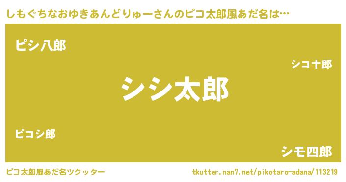 | 意味不明あだ名 | 『住所不定無職しもぐちなおゆきあんどりゅー(50歳)』 |