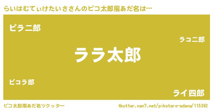 | 男性向けラノベタイトル風あだ名 | 『Re:らいはむてぃけたいさから始める異世界生活』 |