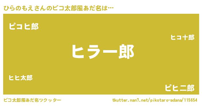 | 男性向けラノベタイトル風あだ名 | 『Re:ひらのもえから始める異世界生活』 |