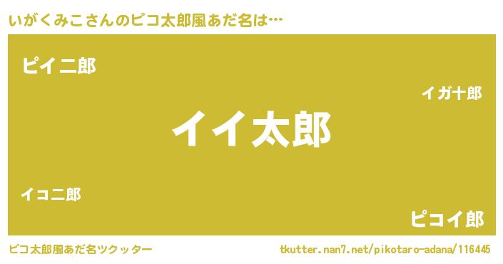 | 女子向けラノベタイトル風あだ名 | 『いがくみこの玉の輿計画!』 |