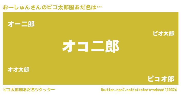 | 男性向けラノベタイトル風あだ名 | 『この素晴らしい世界におーしゅんを!』 |