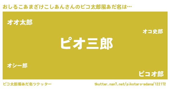 | 男性向けラノベタイトル風あだ名 | 『この素晴らしい世界におしるこあまざけこしあんを!』 |