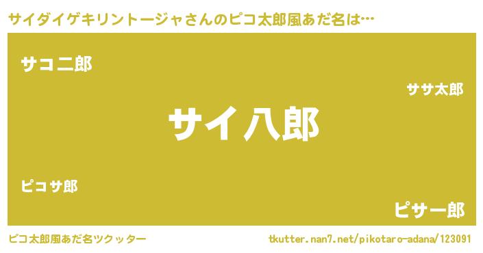 | 意味不明あだ名 | 『住所不定無職サイダイゲキリントージャ(89歳)』 |