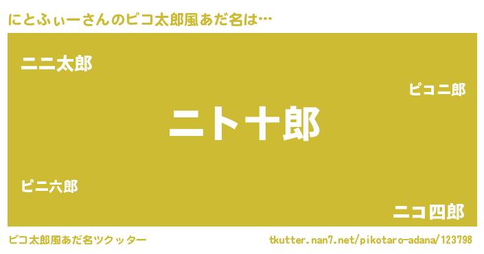 | 男性向けラノベタイトル風あだ名 | 『にとふぃーの嫁は女の子じゃないと思った?』 |