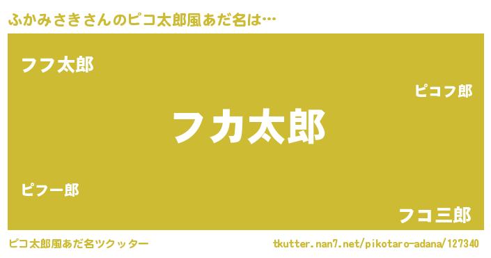 | 男性向けラノベタイトル風あだ名 | 『ふかみさきの嫁は女の子じゃないと思った?』 |