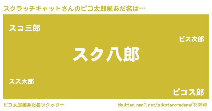 | 意味不明あだ名 | 『住所不定無職スクラッチキャット(85歳)』 |