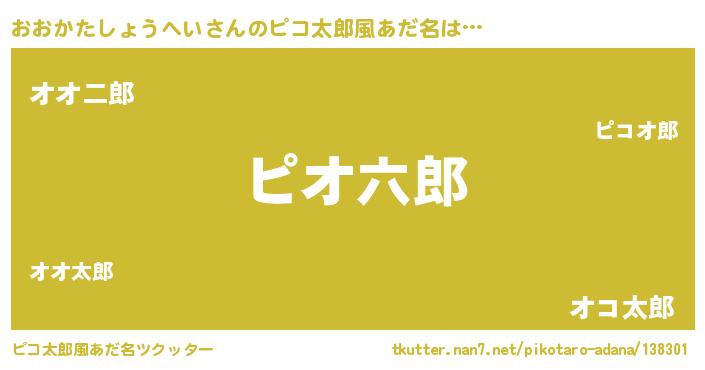 | 男性向けラノベタイトル風あだ名 | 『おおかたしょうへい~年齢イコール彼女いない歴の魔法使い~』 |
