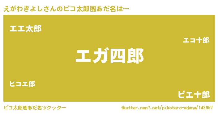 | 女子向けラノベタイトル風あだ名 | 『えがわきよしの卵を拾いまして』 |