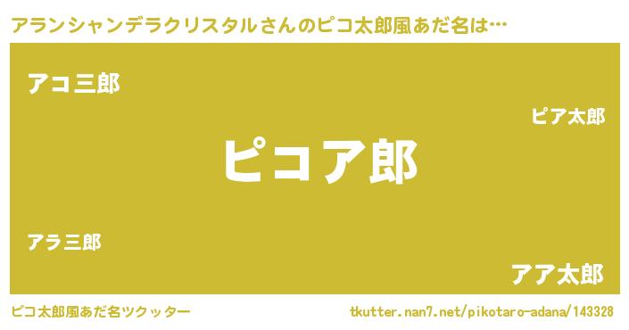 | 男性向けラノベタイトル風あだ名 | 『アランシャンデラクリスタルスレイヤー』 |