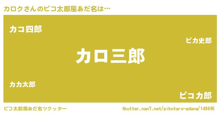 | 男性向けラノベタイトル風あだ名 | 『カロクの嫁は女の子じゃないと思った?』 |