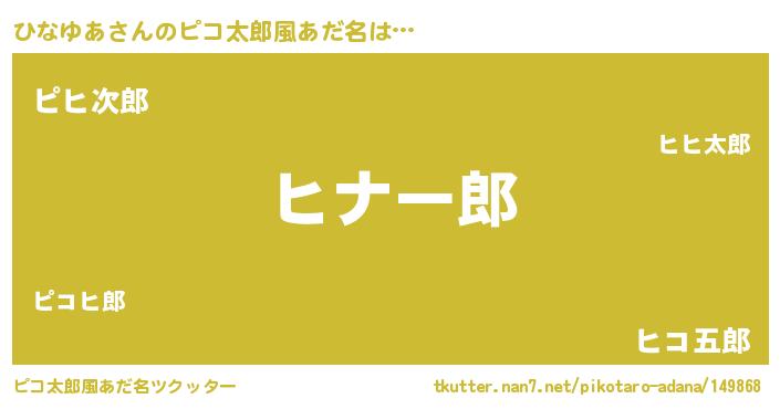 | 男性向けラノベタイトル風あだ名 | 『この素晴らしい世界にひなゆあを!』 |