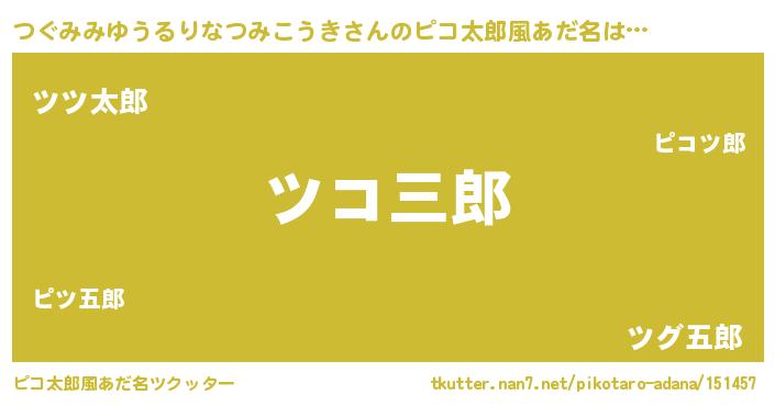 | 欧米人風あだ名 | 『マイケルつぐみみゆうるりなつみこうき』 |