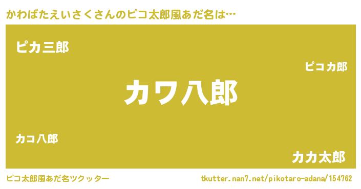 | 男性向けラノベタイトル風あだ名 | 『かわばたえいさくの嫁は女の子じゃないと思った?』 |
