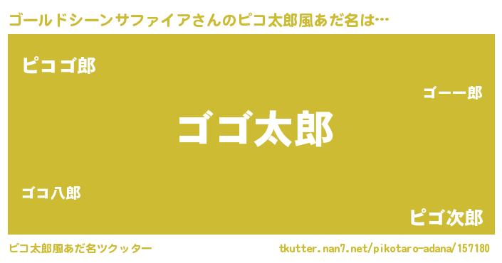 | 男性向けラノベタイトル風あだ名 | 『おまえをオタクにしてやるから、俺をゴールドシーンサファイアにしてくれ! 』 |