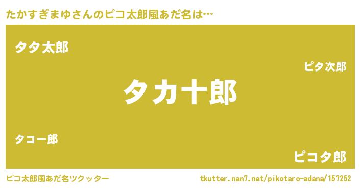 | 男性向けラノベタイトル風あだ名 | 『たかすぎまゆの嫁は女の子じゃないと思った?』 |
