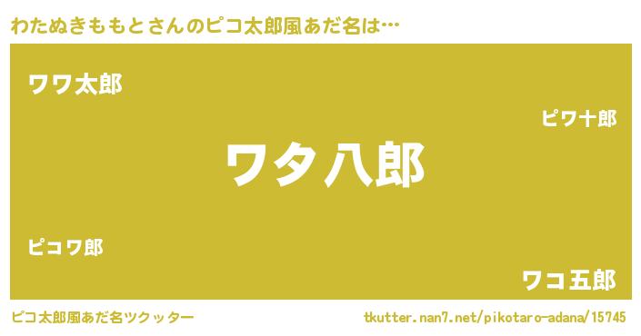 | 男性向けラノベタイトル風あだ名 | 『うちのわたぬきももとが世界を掌握している!』 |