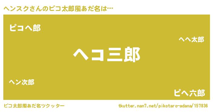 | 男性向けラノベタイトル風あだ名 | 『ヘンスクの憂鬱』 |