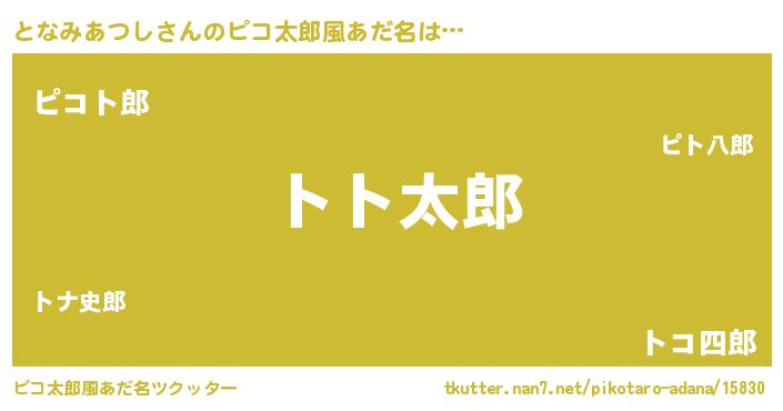 | ヘコむあだ名 | 『となみあつし(遠い目)』『となっふぃ~』 |