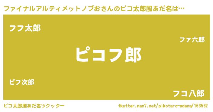 | 男性向けラノベタイトル風あだ名 | 『ファイナルアルティメットノブおに滅ぼされるだけの簡単なお仕事です』 |