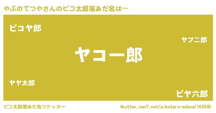 | 意味不明あだ名 | 『住所不定無職やぶのてつや(13歳)』 |