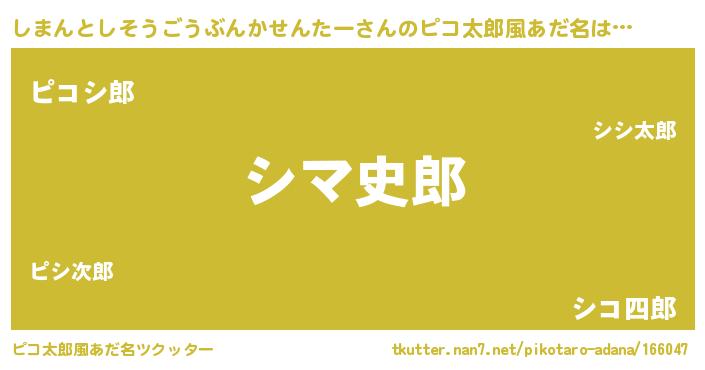 | 意味不明あだ名 | 『とにかく怪しいしまんとしそうごうぶんかせんたー』 |
