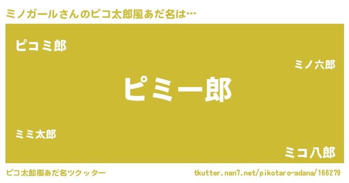 | 女子向けラノベタイトル風あだ名 | 『ミノガールの玉の輿計画!』 |