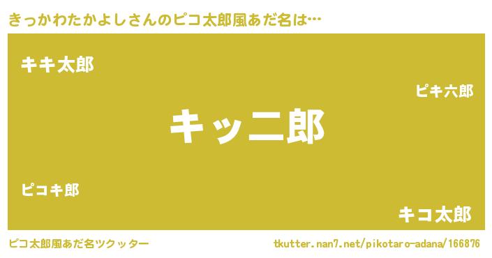| 男性向けラノベタイトル風あだ名 | 『きっかわたかよしの嫁は女の子じゃないと思った?』 |