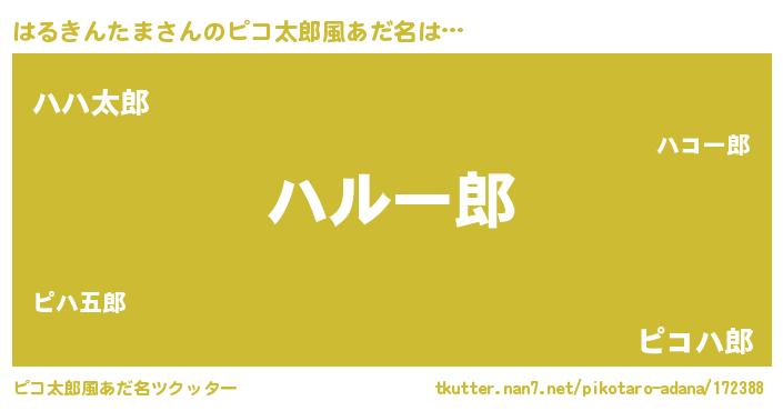 | 男性向けラノベタイトル風あだ名 | 『はるきんたま~年齢イコール彼女いない歴の魔法使い~』 |