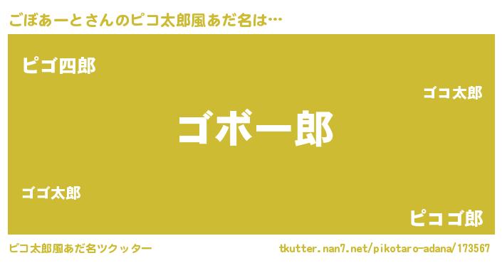 | 男性向けラノベタイトル風あだ名 | 『ごぼあーとの嫁は女の子じゃないと思った?』 |