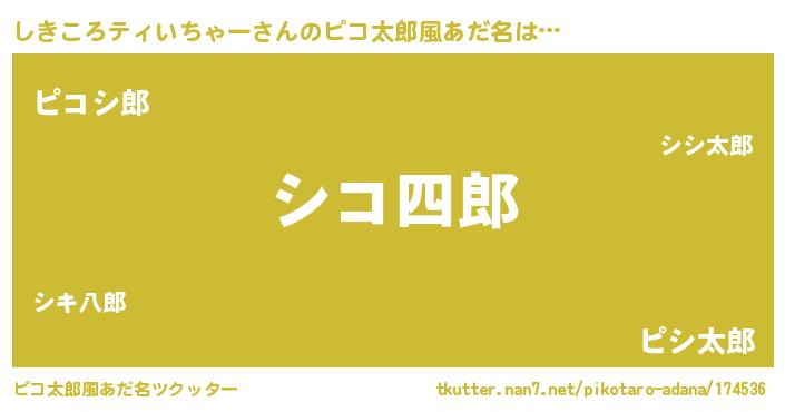 | 男性向けラノベタイトル風あだ名 | 『この素晴らしい世界にしきころティいちゃーを!』 |