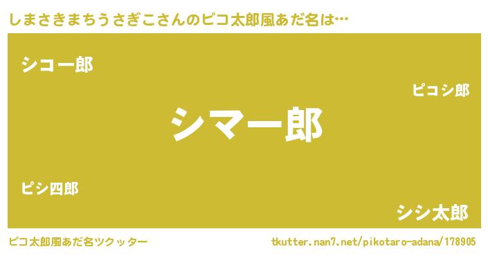 | 女子向けラノベタイトル風あだ名 | 『しまさきまちうさぎこの卵を拾いまして』 |