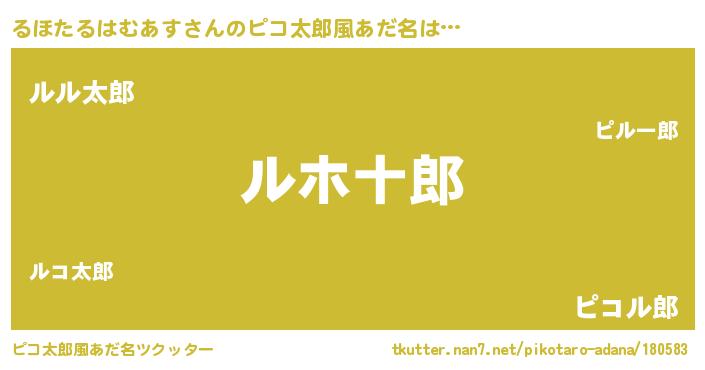 | 男性向けラノベタイトル風あだ名 | 『るほたるはむあすの嫁は女の子じゃないと思った?』 |