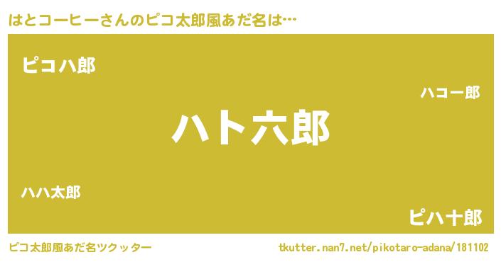 | 男性向けラノベタイトル風あだ名 | 『ハトコーヒースレイヤー』 |
