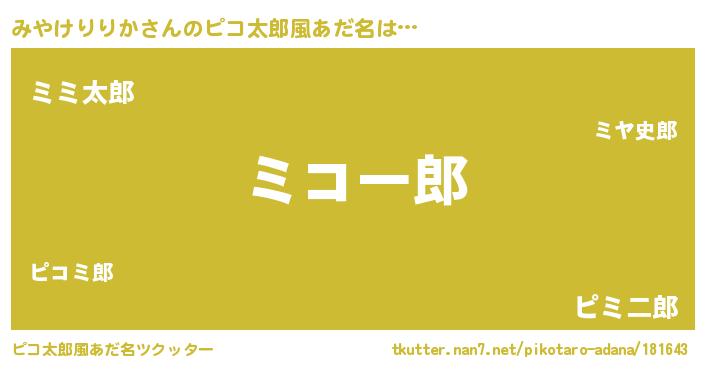 | 男性向けラノベタイトル風あだ名 | 『転生したらみやけりりかだった件』 |