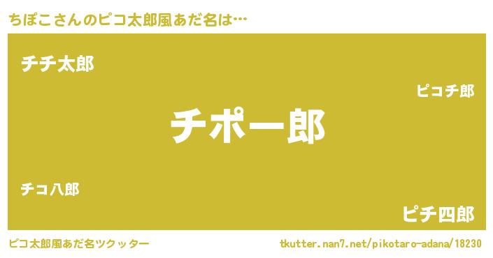 | 男性向けラノベタイトル風あだ名 | 『ちぽこ~年齢イコール彼女いない歴の魔法使い~』 |