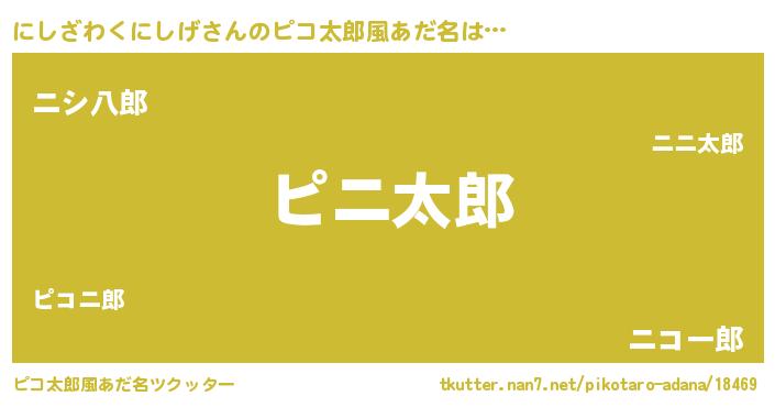 | 男性向けラノベタイトル風あだ名 | 『魔弾の王とにしざわくにしげ』 |