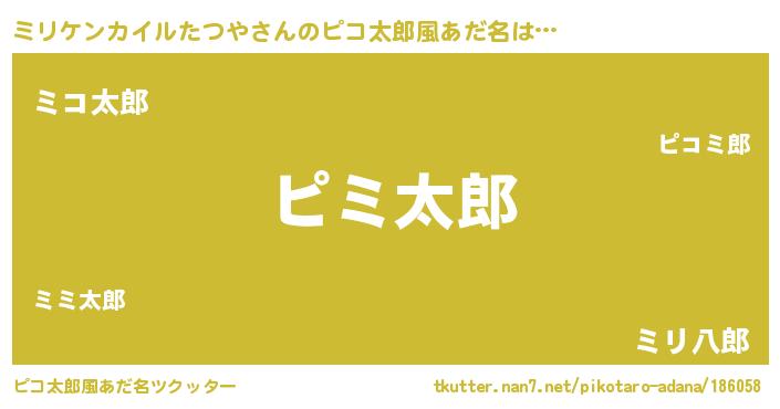 | ことわざ | 三つ子の魂100まで『ミリケンカイルたつやの魂100まで』 |