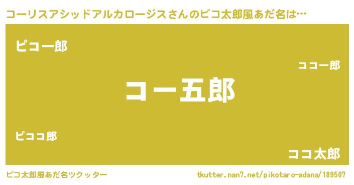 | 欧米人風あだ名 | 『ウサインコーリスアシッドアルカロージス』 |