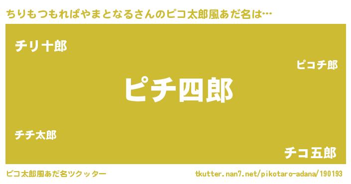 | 男性向けラノベタイトル風あだ名 | 『チリモツモレバヤマトナルスレイヤー』 |