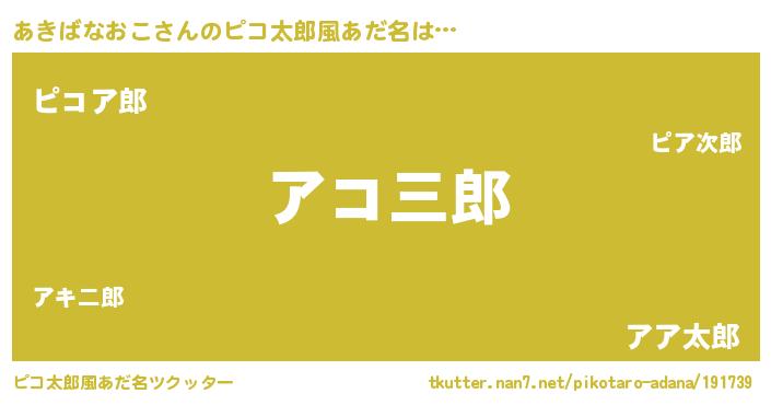 | 男性向けラノベタイトル風あだ名 | 『アキバナオコアートオンライン』 |