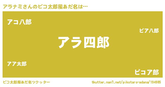 | 欧米人風あだ名 | 『トリンドルアラナミ』 |