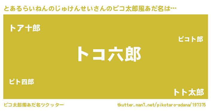 | ヘコむあだ名 | 『とあもー』『とあぷりん』 |