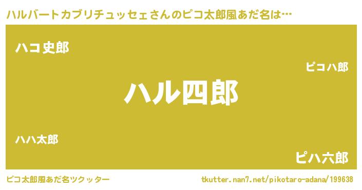 | 女子向けラノベタイトル風あだ名 | 『ハルバートカブリチュッセェは平凡を望む』 |